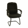 Upholstered luxurious fabric chair with plastic upholstered armrests and iron frame
