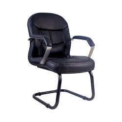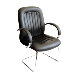 Upholstered Leather chair with steel armrest and wheel base